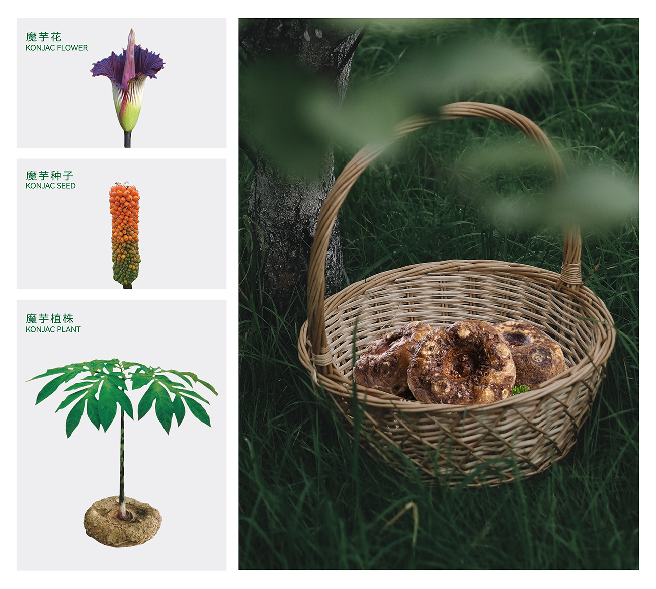 魔芋又名蒟蒻(jǔ ruò),是一種生長在海拔200米—2500米的山間多年生草本植物,是天南星科魔芋屬的總稱,栽培學上屬于薯芋類作物。